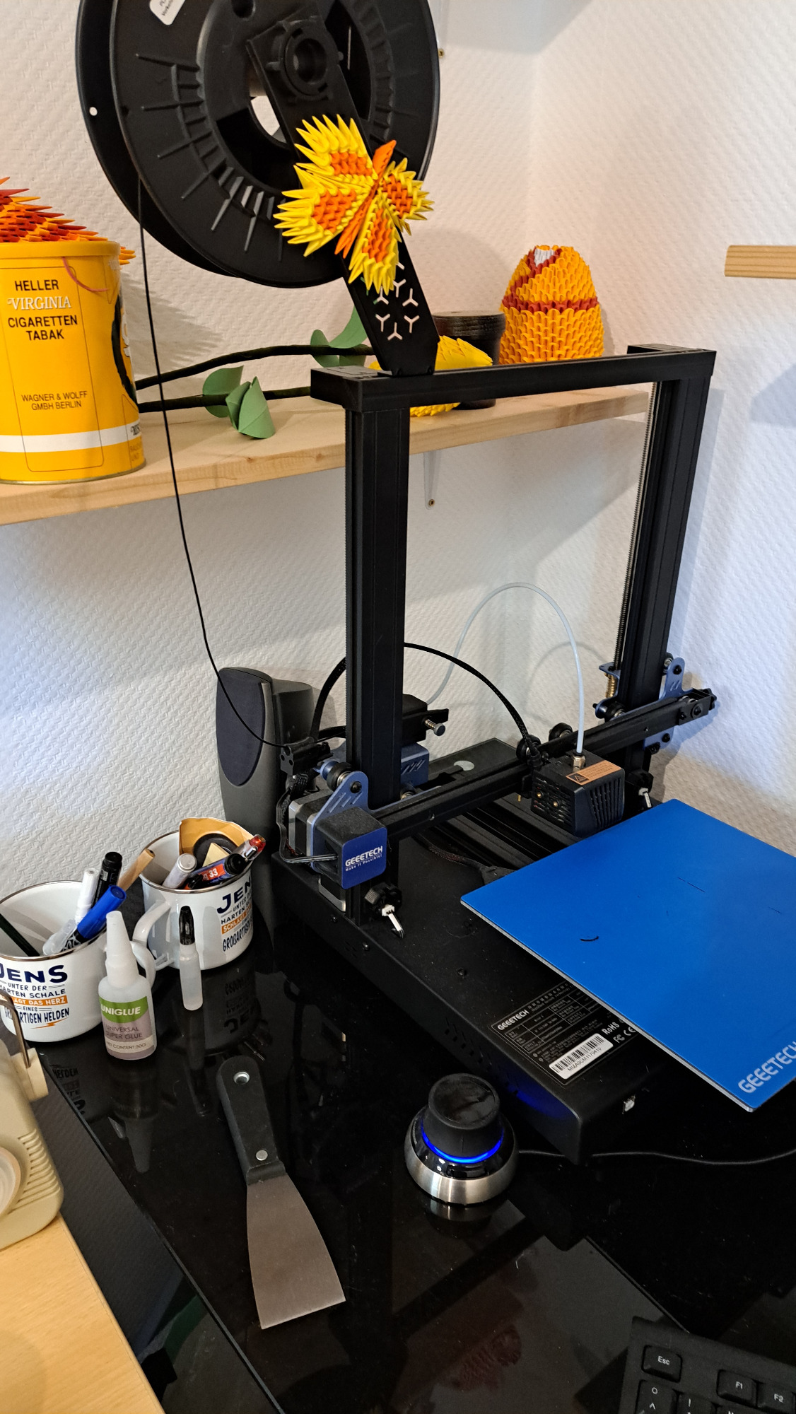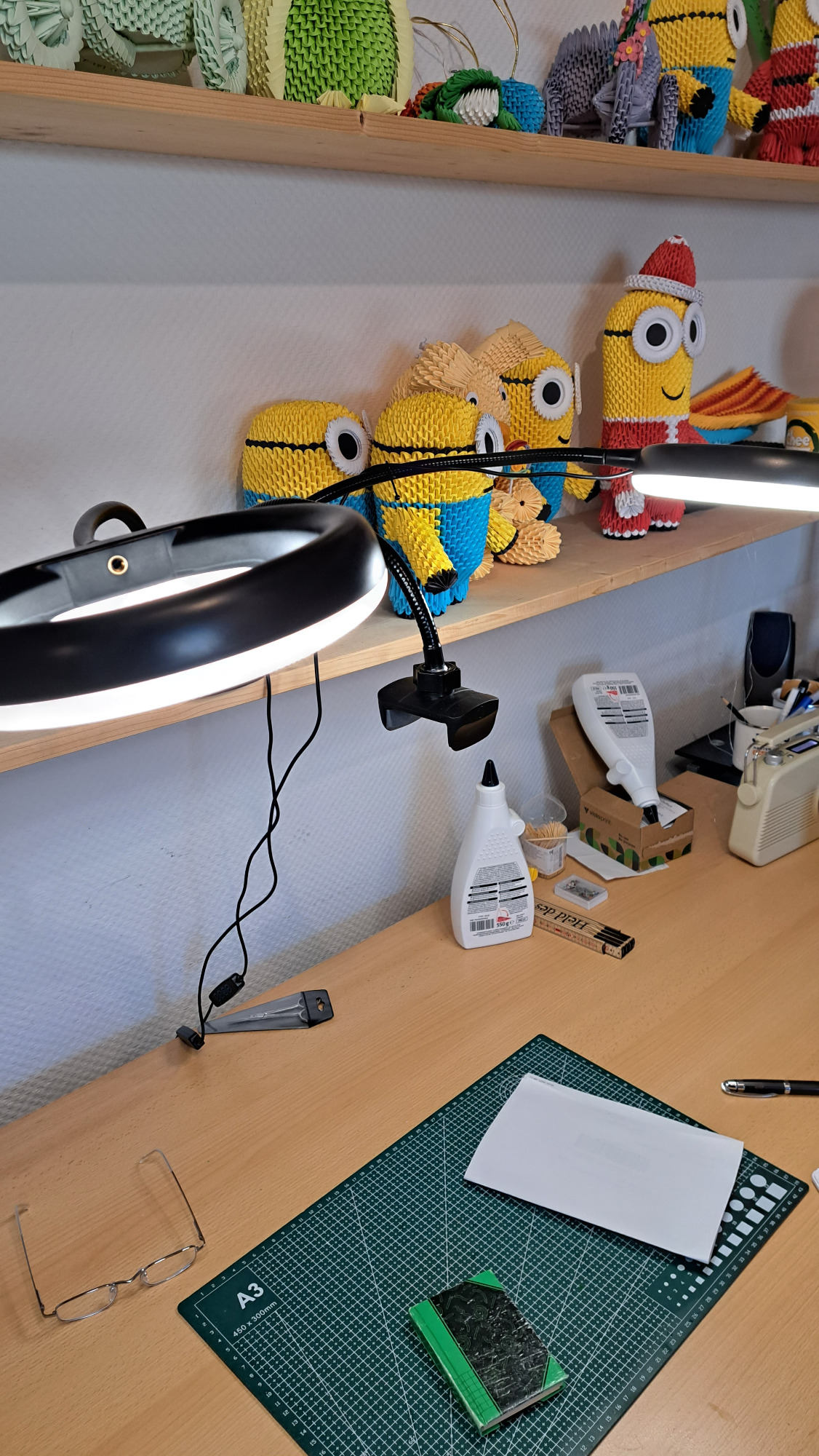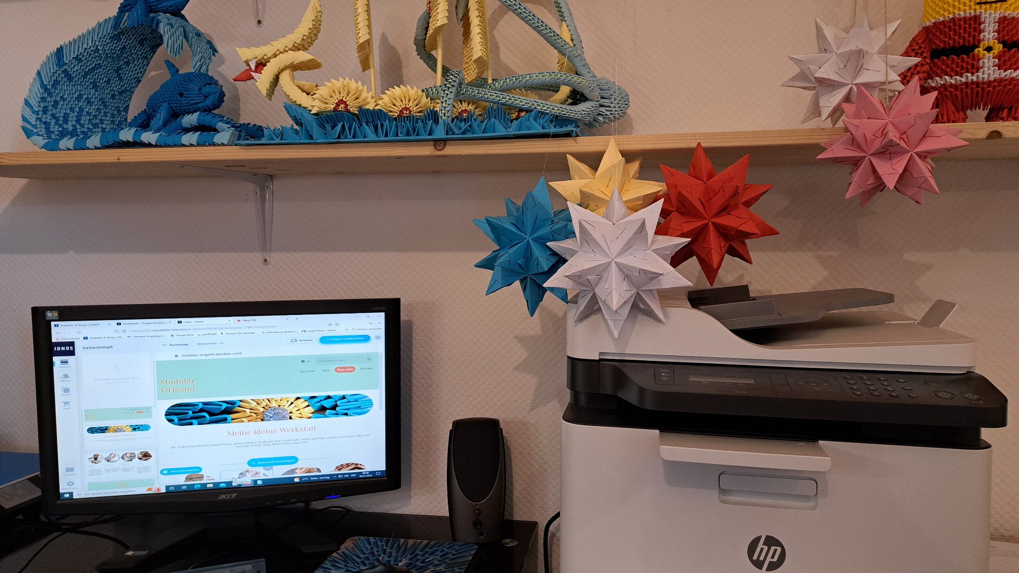 Hier entstehen alle Kreationen. Das ist mein Bereich, wo ich neue Videos aufnehmen kann, an neuen Figuren tüftle und zum Schluss alle Origami-Figuren entstehen lasse.